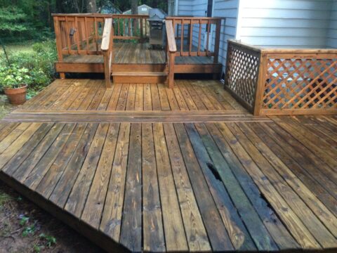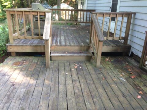 If you are getting a house wash we always include a deck washing with this service. This is a typical maintenance wash to remove mildew and dirt from the wood surfaces. A thorough deck cleaning prepares a deck for clear sealing and staining and every inch of the deck is cleaned with chemicals and pressure washed.